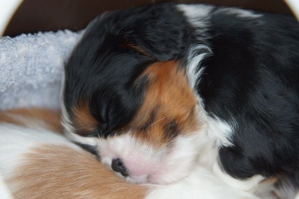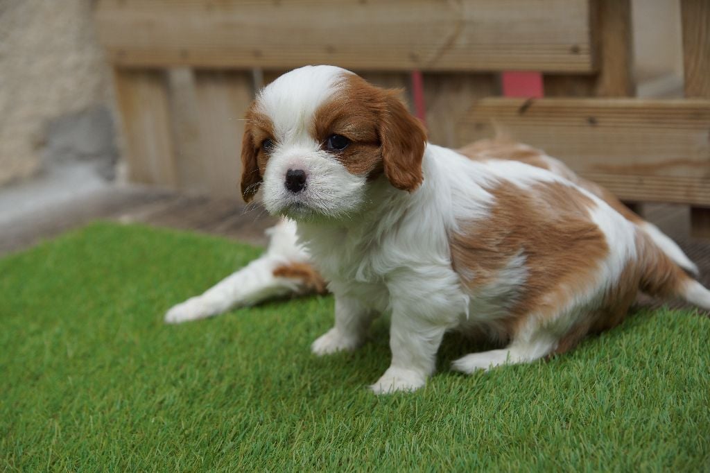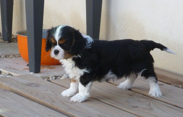 Deux mâles, un tricolore et un blenheim, ainsi qu'une femelle blenheim pour la troisième portée de Jade qui comme à son habitude est très attentive à ses nouveaux-nés.