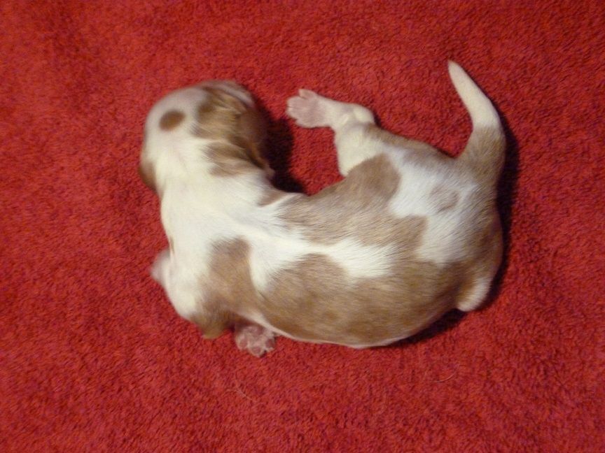 C'est un petit chiot très attachant et hyper câlin qui est resté le poids plume de la fratrie mais ne se laisse pas dominer par son frère pourtant largement plus "costaud" !